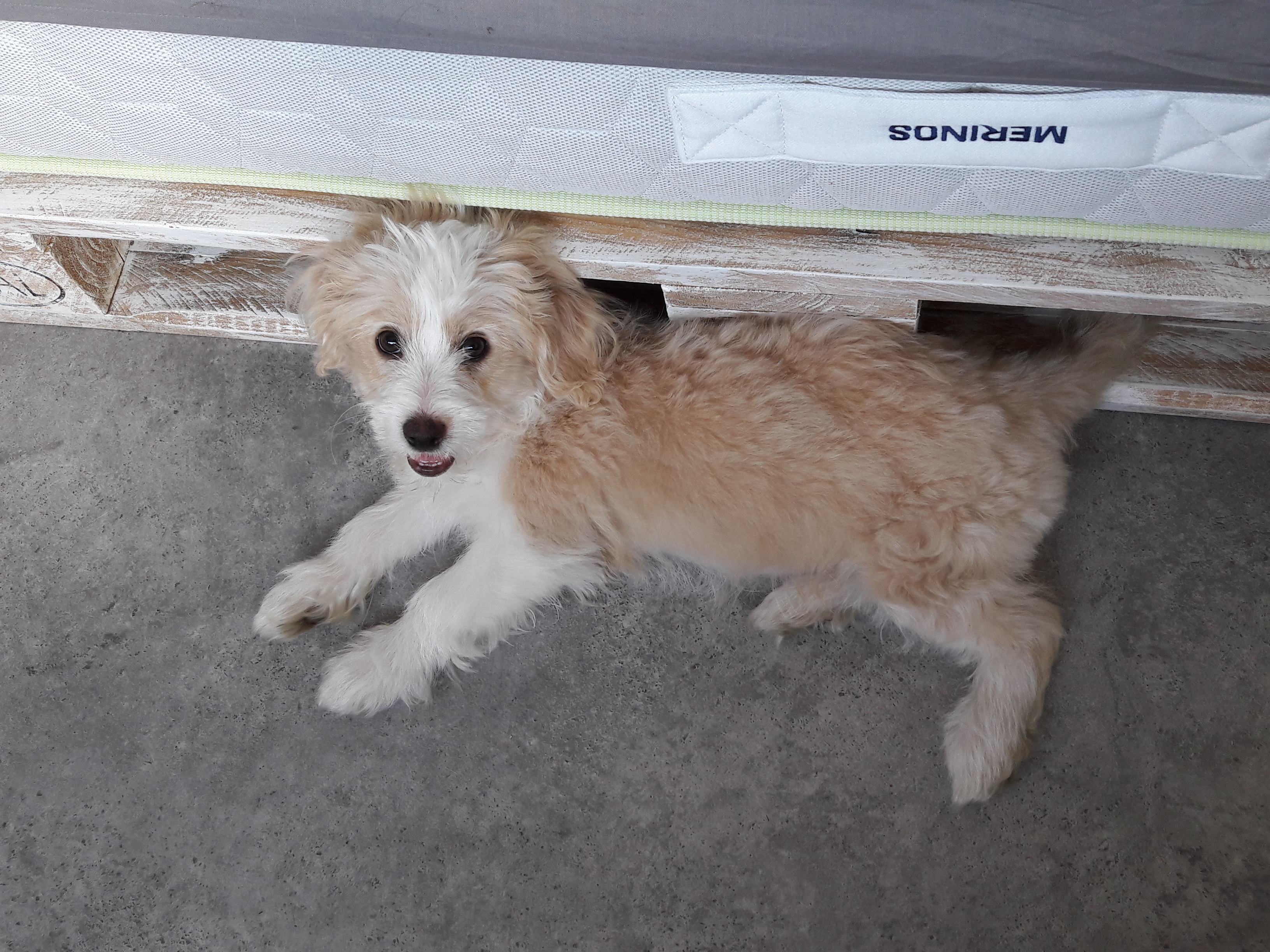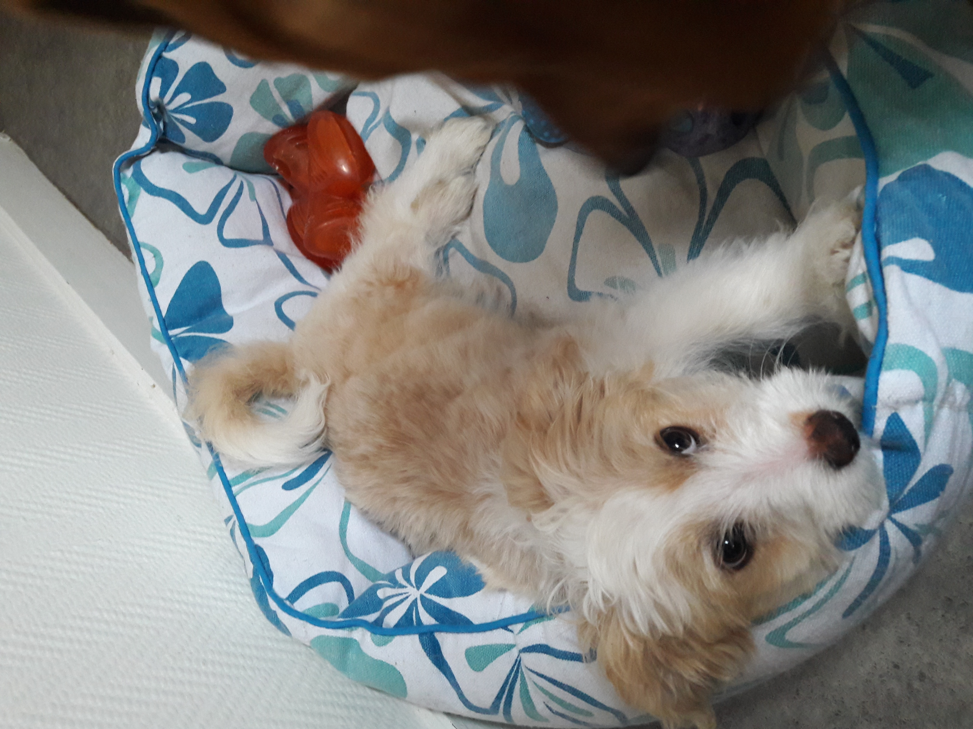 Caractère et histoire : Floky est une petite chienne très vive et joyeuse. Elle s’amuse beaucoup avec la chienne de la famille d’accueil, qui lui apprend comment jouer avec son frisbee ou tirer sur ses battons. Elle apprend très vite : elle fait pipi sur son alèse, commence à reconnaitre son nom, le « assis » et le « viens là ».