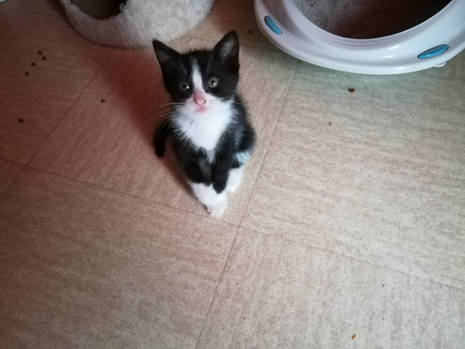 Caractère et histoire : Nanou est une chatonne qui a son caractère mais après quelques heures elle vient tout doucement demander des câlins. Elle crache encore un peu sur les chiens.