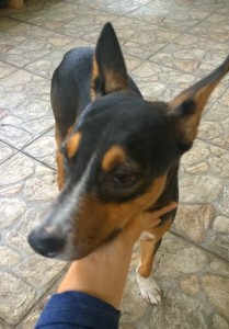 Chaussette à été vu à plusieurs reprises sur un parking de supermarché, il avait l’air de chercher quelque chose, il était en bonne santé et pas maigre donc certainement abandonné (aucune identification), il a été très facile à approcher et a suivi jusque devant la voiture, il a eu peur de monter. C’est un petit chien très reconnaissant que nous avons vu dès l’arrivée à la maison, un regard plein d’amour de remerciement qui ne nous lâche pas d’une semelle.