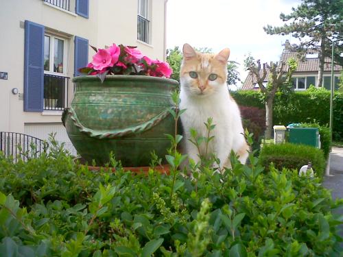 Habituée à vivre en pavillon avec de nombreuses sorties, elle ne s’éloigne pas. quand on sort le chien elle en profite pour se promener avec nous. Elle pourrait peut être s’adapter à un appartement si il y a de l’espace et un grand arbre à chat car elle adore grimper et se poster en hauteur, mais un jardin restera un vrai plus pour elle.