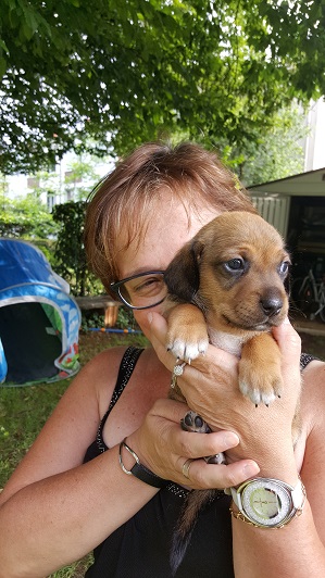 Caractère et histoire : Cookie a été élevée par sa maman, avec ses frères et sœurs. Son éducation est à faire. Elle aime le contact avec l’humain. Elle est très dégourdie pour son jeune âge ! Elle arrive à monter les escaliers.