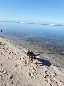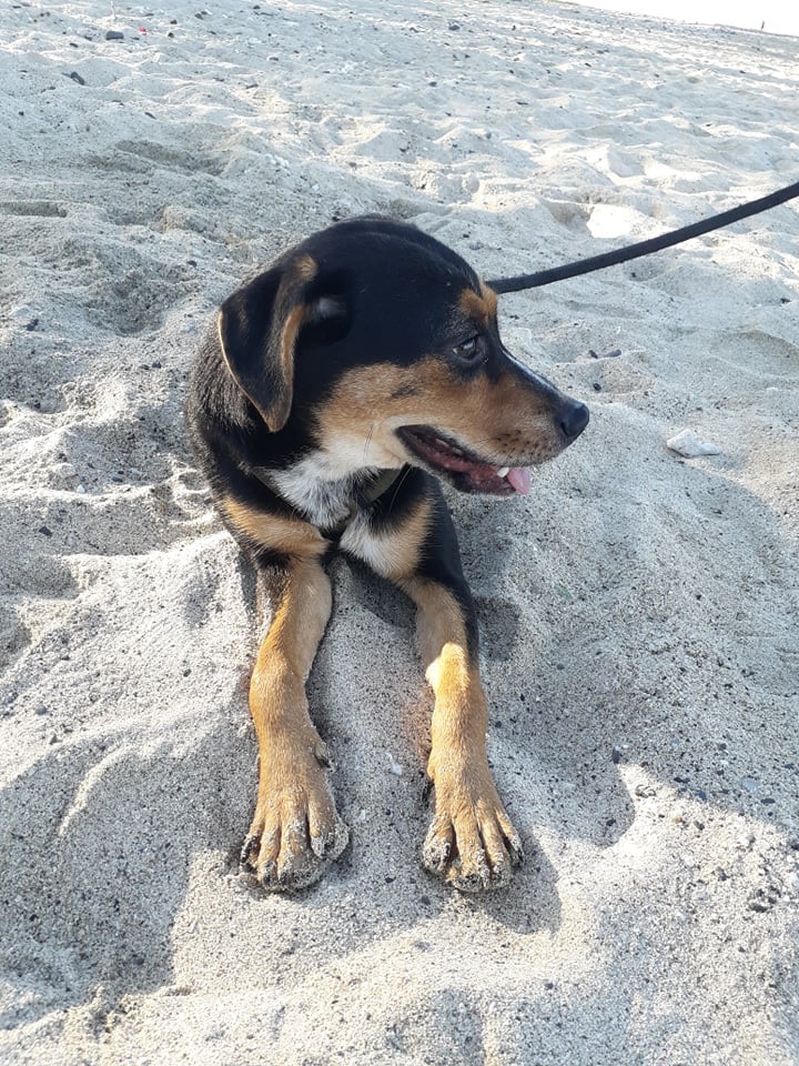 La première balade a été très difficile car elle avait du mal avec le collier. Cela va désormais beaucoup mieux. Elle s’excite beaucoup en voyant les autres chiens. Elle adore les balades à la plage et aime nager et plonger !!!