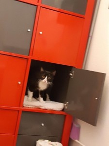 C’est une grosse gourmande. Elle aime les câlins. Elle est ok chats et chiens.