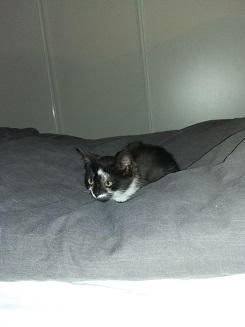 C’est un gentil chaton qui découvre la vie en maison et les humains. Il a tout de suite été propre. Il est de plus en plus câlin. Il est joueur.