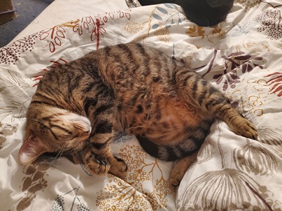 Actualisation au 11/04/2025, message de sa famille d’accueil : Ça fait maintenant plusieurs mois que Gus est chez moi et il s’est un peu assagit. Il comprend bien son nom et le « non ». C’est vraiment un chat très vif, tonique, curieux ! Il apprécie aussi les câlins mais ne vient pas de lui même sur mes genoux. Il aime aussi venir me réclamer des câlins quand je suis au lit. Mais ce qu’il aime par dessus tout c’est jouer ! Il joue seul, il joue avec les autres chats de chez moi, avec une balle, une chaussette, etc. C’est un amour de chat qui mérite d’avoir sa propre famille.