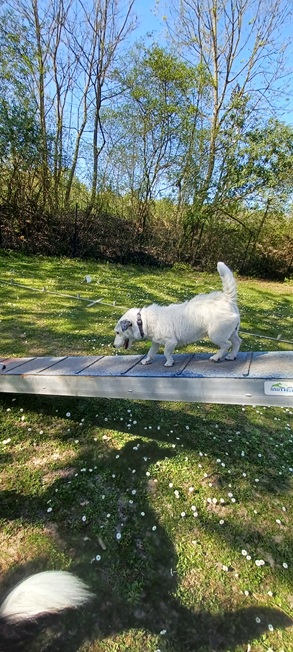 L’absence sera à travailler car elle pleure un peu mais se calme rapidement surtout maintenant qu’elle a compris que c’est plus intéressant lorsque sa famille part car elle a le droit à une friandise à ronger alors que lorsqu’elle rentre elle l’ignore.