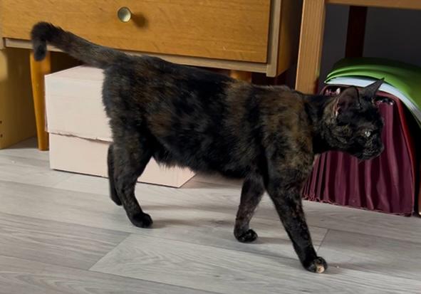 Elle n’a pas peur des humains, sa famille d’accueil pense donc qu’elle avait une famille avant d’arriver à l’association (juillet 2025). Elle s’est rapidement sentie bien et s’est occupé sereinement de ses bébés.