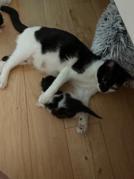 Caractère et histoire : Astrid et ses bébés (Bolduch, Atlas, Amamya et Alfie) ont été trouvés dans un jardin. Ils étaient cachés sous des cartons. Les bébés avaient les yeux à peine ouverts. Ils ont donc tous été mis en sécurité rapidement permettant ainsi de protéger toute la famille.