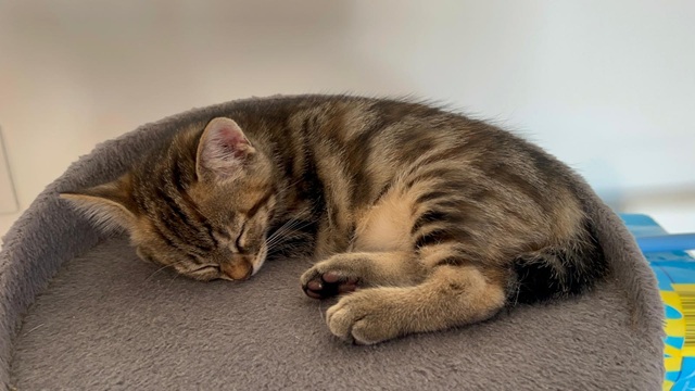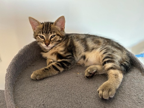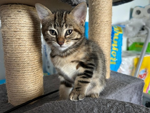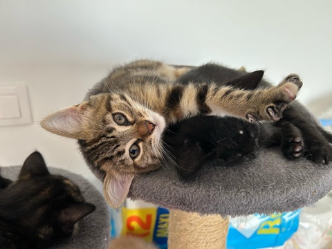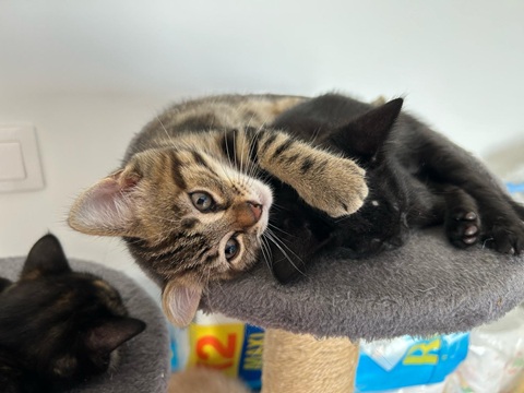 Flammeche est la plus joueuse et la plus vive de la fratrie. Soit elle joue, soit elle dort ! Elle est aussi très curieuse.
