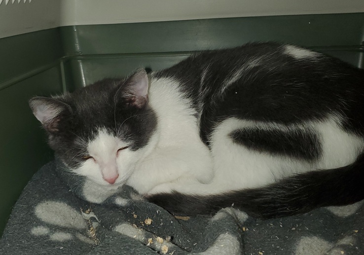 Saki est une gentille minette, qui n’avait pas l’habitude de l’humain. Elle reste encore un peu craintive mais elle a fait de gros progrès. Sa future famille devra faire preuve de patience.