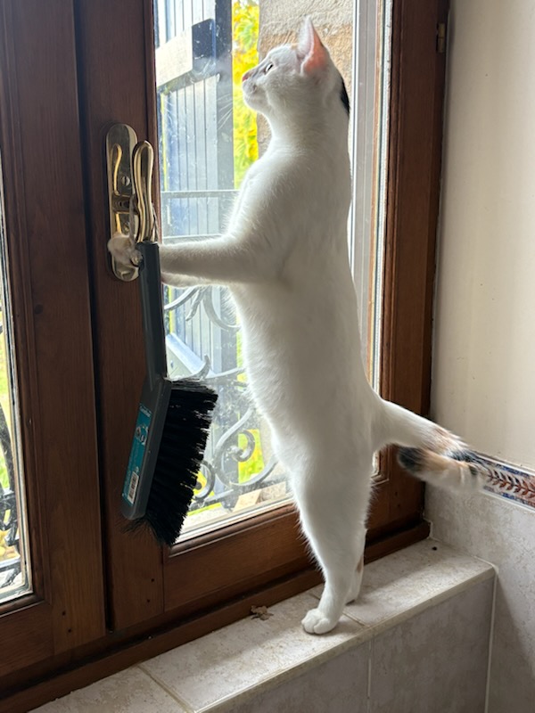 Une adoption avec son frère Tanjiro ou un chat bien dans ses pattes sera un plus pour elle.
