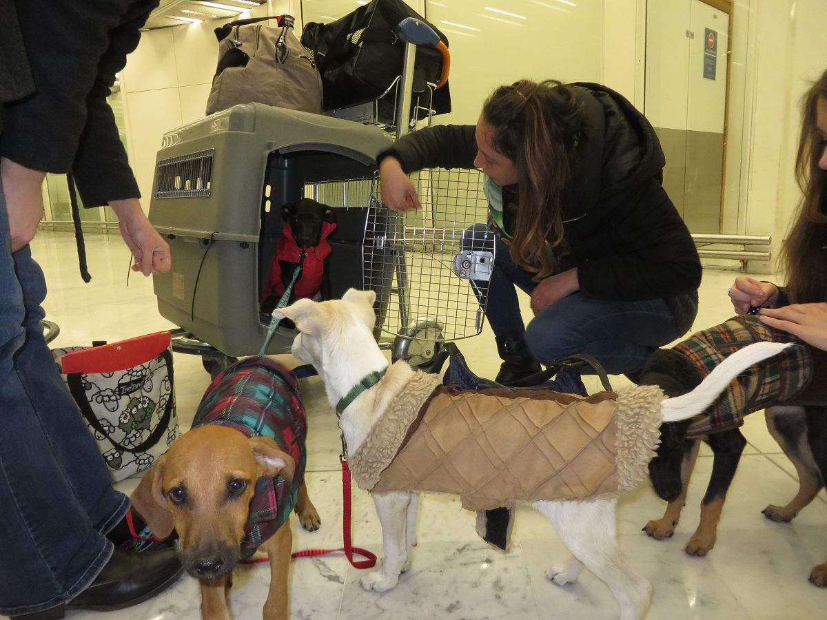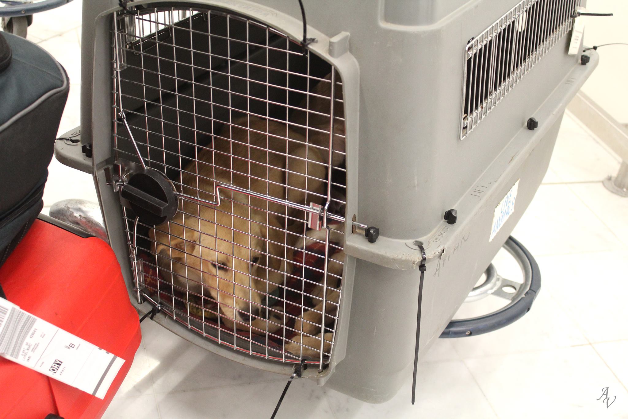 Les 3 chiots Noushka, Lucky, Jolya et les 3 chatons Roy, Rouki et Féline ont atterri à l’aéroport d’Orly, ce matin, de bonne heure.