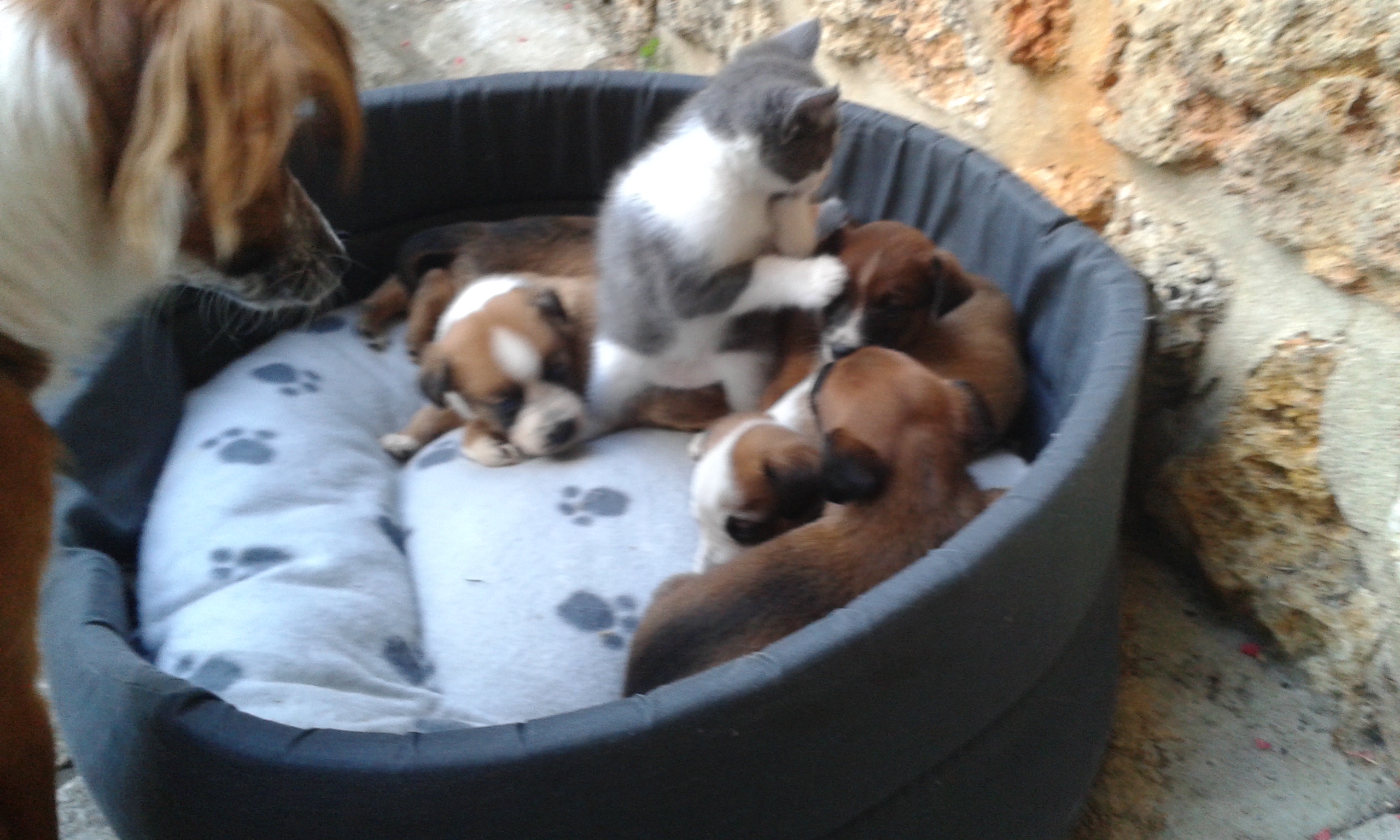 Beaucoup de loulous sont arrivés ce matin ! Les chiots Papillon, Ticco et sa sœur Ticca. Les chatons : Tirou, Toudou et Lune.