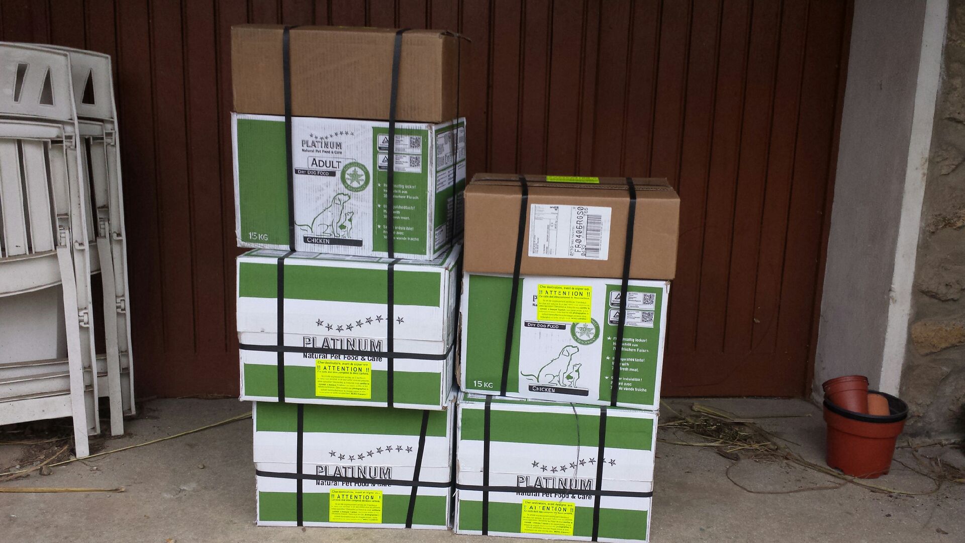 Un don à Rêves de chiens pour les soins aux animaux qui arrivent, pour régler les frais de retour de cages de transport (80 à 100€ par colis de 20kg augmentation des tarifs de 20 à25 € entre 2013 et 2014)