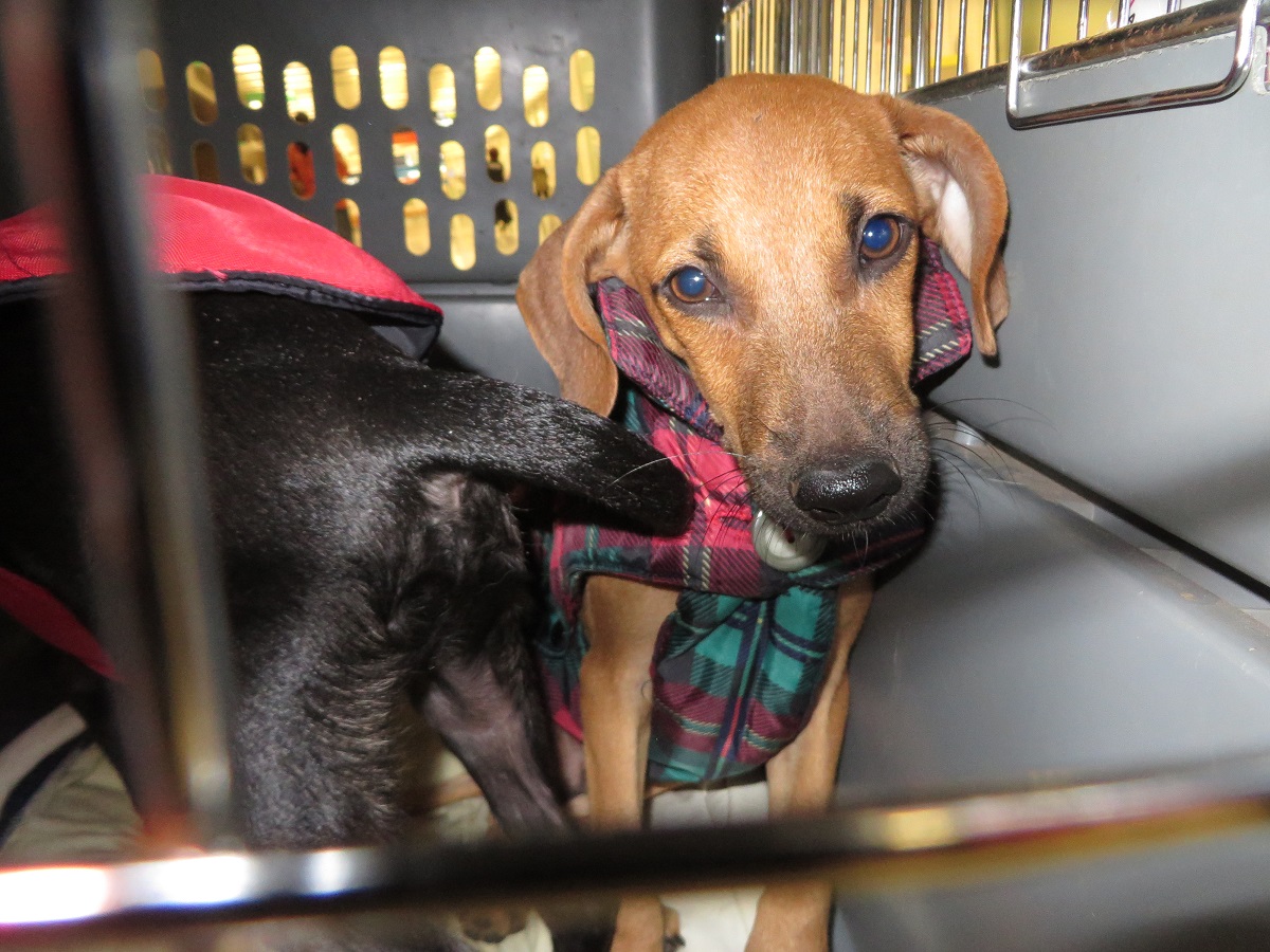 Ce matin, de bonne heure, 4 petits loulous Réunionnais ont atterri : 2 filles et 2 gars ! Les filles, Pipa et Loupiotte sont parties directement rejoindre leurs nouvelles familles. Les gars, Bad Boy et Marley ont rejoint leurs familles d’accueil en attendant d’être adopté.